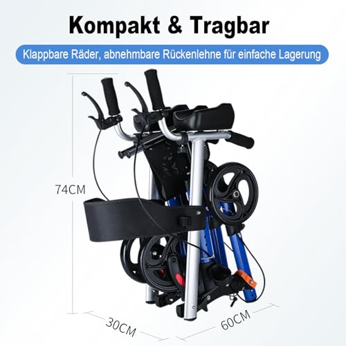 Der stabile Aluminiumrahmen sorgt für eine zuverlässige Unterstützung im Alltag und bleibt mit nur 8,68 kg angenehm leicht. Dadurch lässt sich der Rollator problemlos durch die Wohnung manövrieren und bei Bedarf kompakt zusammenklappen. Das schmale Design macht ihn besonders praktisch für den Einsatz in Innenräumen oder engen Bereichen.
