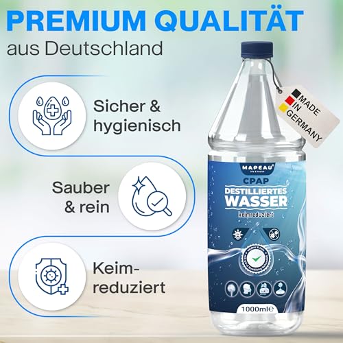 Hergestellt in Deutschland und unter strengen Qualitätskontrollen produziert, bietet das Mapeau CPAP Wasser eine zuverlässige und hygienische Lösung für Ihre tägliche Atemtherapie.