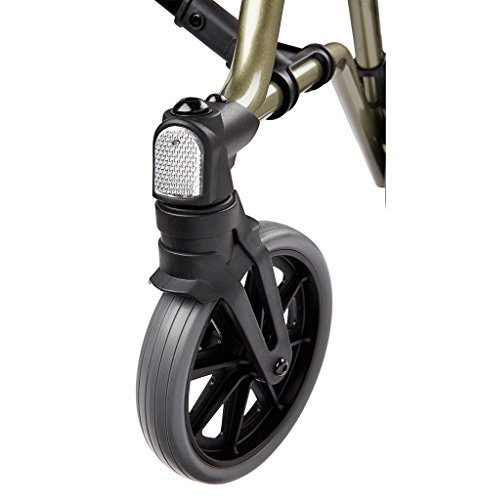 Der Aluminiumrahmen sorgt für eine stabile Bauweise bei gleichzeitig geringem Gewicht. Dadurch lässt sich der Rollator mühelos schieben und transportieren. Die Soft-PU-Bereifung ermöglicht ein ruhiges Fahrverhalten, während der integrierte Lenkungsdämpfer zusätzlich für mehr Kontrolle auf unebenem Untergrund sorgt.