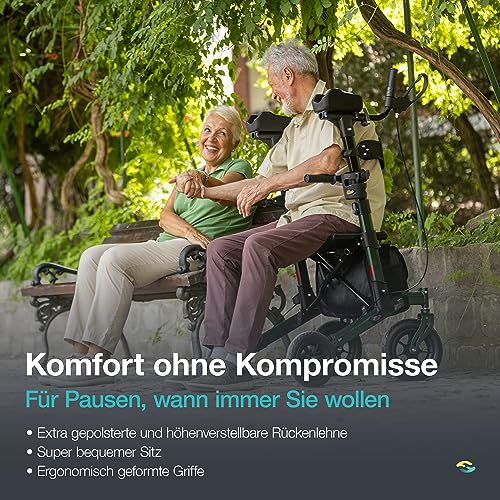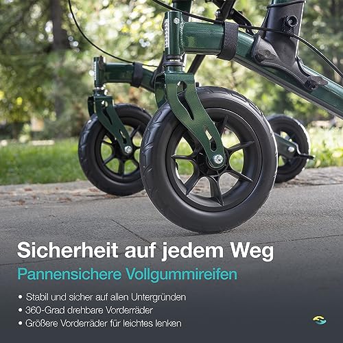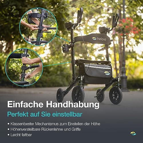Helavo Outdoor-Arthritis-Rollator mit gepolsterten Unterarmstützen – Stand-Up Rollator mit pannensicheren Vollgummireifen für den Außenbereich – Maximale Mobilität & Komfort im Freien