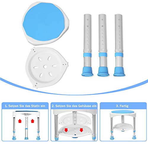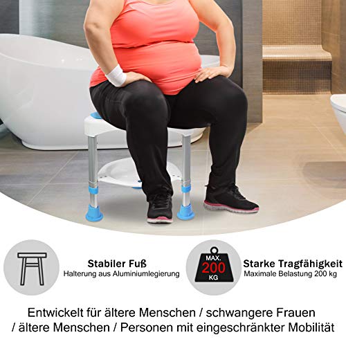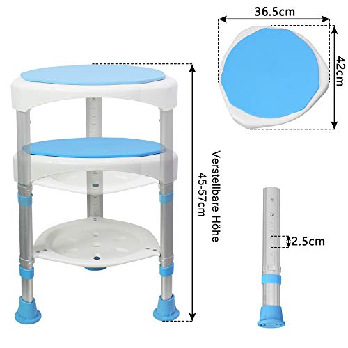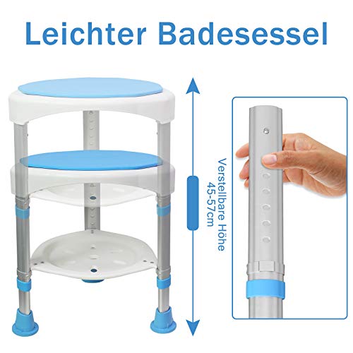 Der HENGMEI Duschhocker bietet eine sichere, komfortable und flexible Sitzlösung für Senioren, Schwangere und Menschen mit eingeschränkter Mobilität. Mit einer höhenverstellbaren Sitzhöhe von 45 bis 57 cm lässt sich der Hocker individuell an unterschiedliche Körpergrößen anpassen. Die 360° drehbare Sitzfläche ermöglicht bequemes Drehen ohne Kraftaufwand – ideal für enge Duschen.