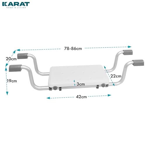 Dank der flexiblen Breitenverstellung von 78 bis 86 cm passt sich der Sitz den meisten handelsüblichen Badewannen an. Das werkzeugfreie Stecksystem ermöglicht eine schnelle Montage innerhalb weniger Minuten. Der KARAT Levi Badewannensitz ist eine praktische Lösung für Senioren, Schwangere oder Personen mit eingeschränkter Mobilität, die Wert auf Sicherheit und Selbstständigkeit legen.