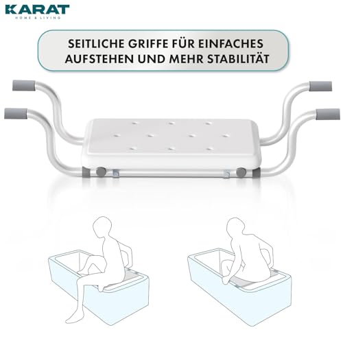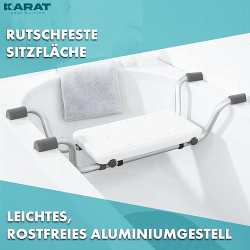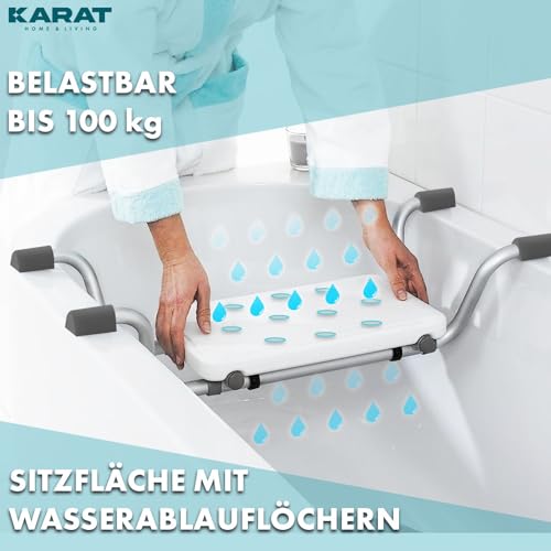 Die ergonomisch geformte Sitzfläche mit integrierten Wasserablauflöchern verhindert Staunässe und sorgt für hygienischen Komfort. Rutschfeste TPR-Auflagen bieten zusätzlichen Halt auf dem Wannenrand. Trotz seines geringen Eigengewichts von nur 1,6 kg überzeugt das Sitzbrett durch eine stabile Aluminiumkonstruktion mit einer Tragkraft bis 100 kg.