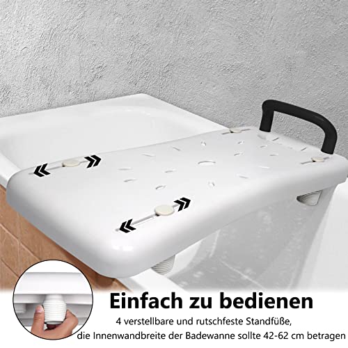 Der ergonomisch geformte Handgriff bietet zusätzliche Unterstützung beim Hinsetzen und Aufstehen. Abgerundete Kanten erhöhen den Komfort und minimieren das Verletzungsrisiko. Mit einem geringen Eigengewicht lässt sich das Brett schnell einsetzen oder entfernen. Ideal geeignet für Senioren, Schwangere oder Personen mit eingeschränkter Mobilität – eine praktische Badewannenhilfe für mehr Sicherheit im Badezimmer.