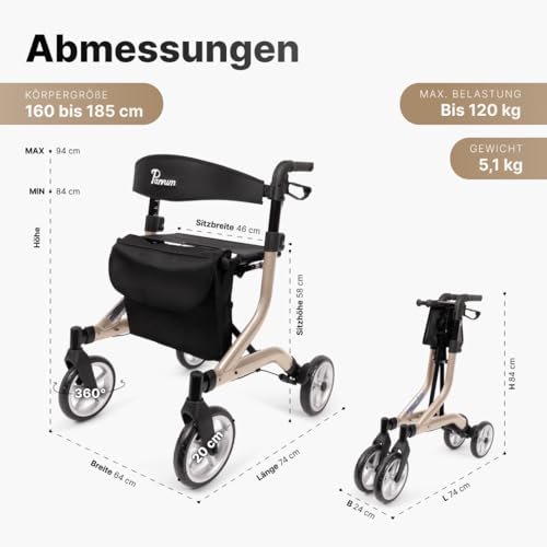 Dank der faltbaren Konstruktion kann der Rollator schnell zusammengelegt und platzsparend verstaut werden. Damit ist er besonders praktisch für Reisen oder den Transport im Auto.