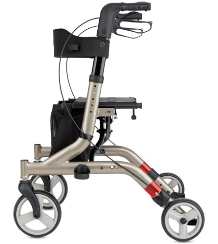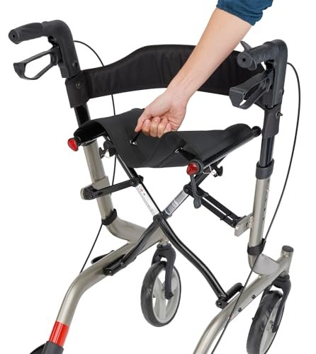 Ein großer Vorteil ist die Einhand-Faltfunktion. Der Rollator lässt sich schnell und unkompliziert zusammenklappen und eignet sich dadurch besonders gut für Reisen oder den Transport im Auto.