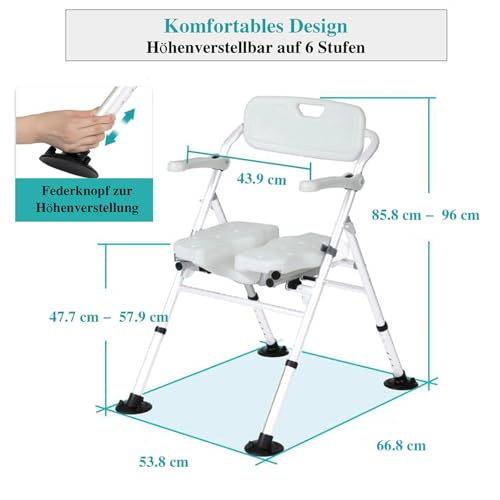 Vielseitiger, verstellbarer und komfortabler Duschsitz: Dieser Duschstuhl ist speziell für Erwachsene konzipiert und verfügt über Armlehnen und Rückenlehne sowie eine verstellbare Höhe, um den Bedürfnissen verschiedener Senioren gerecht zu werden für Erwachsene.