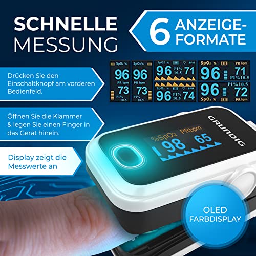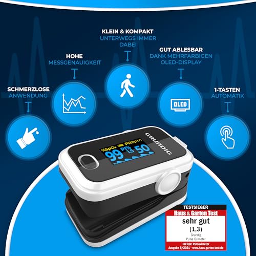 Wer ein präzises, einfach verständliches und sofort einsatzbereites Fingeroximeter sucht, trifft mit diesem GRUNDIG Pulsoximeter eine durchdachte Wahl für die regelmäßige Kontrolle von Sauerstoffsättigung und Puls.