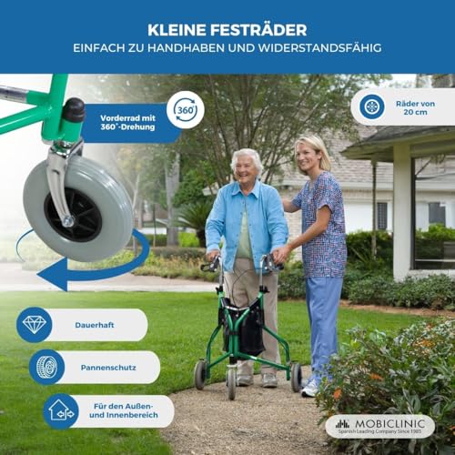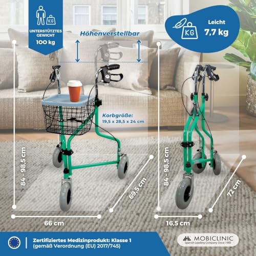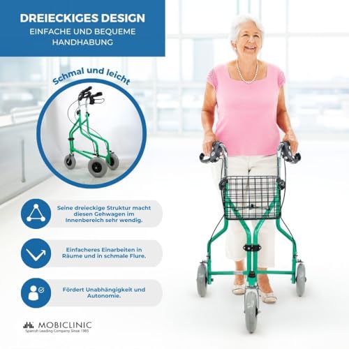 Mobiclinic Caleta Rollator Dreirad faltbar mit Korb und Tasche leicht