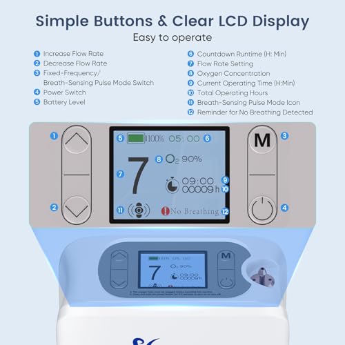 Das Gerät liefert konstant bis zu 90 % Sauerstoffkonzentration über alle sieben einstellbaren Leistungsstufen hinweg. Dadurch lässt sich die Versorgung individuell anpassen – ganz gleich, ob im Alltag, während der Erholung oder auf Reisen. Besonders hervorzuheben ist der integrierte Atemsensor: Er erkennt Ihre Einatmung und gibt Sauerstoff gezielt nur dann ab, wenn er benötigt wird. Sollte keine Atmung erkannt werden, schaltet das Gerät automatisch in den kontinuierlichen Modus – für maximale Sicherheit.