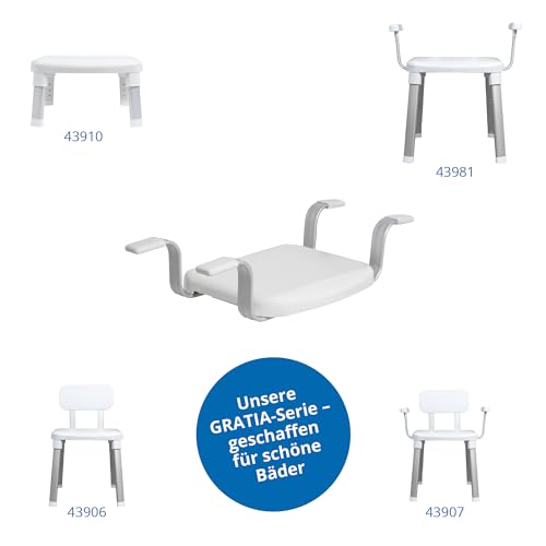 Mit einer Tragkraft von bis zu 150 kg überzeugt das Modell 43909 durch besondere Stabilität. Die Anti-Rutsch-Oberfläche sorgt für festen Halt beim Waschen oder Duschen, ohne in die Wanne eintauchen zu müssen. Dank der variablen Anpassung passt das Sitzbrett auf Badewannen mit einer Breite von 52 bis 64 cm und lässt sich schnell montieren.