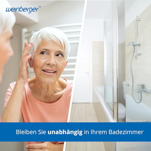 Die Kombination aus hochwertigem Kunststoff und Aluminium macht die Badezimmerhilfe besonders langlebig sowie pflegeleicht. Mit nur 1,85 kg Eigengewicht bleibt sie leicht handhabbar und dennoch robust im täglichen Einsatz. Das schlichte, moderne Design in Weiß fügt sich harmonisch in jedes Bad ein – eine funktionale Lösung für mehr Selbstständigkeit und Sicherheit.